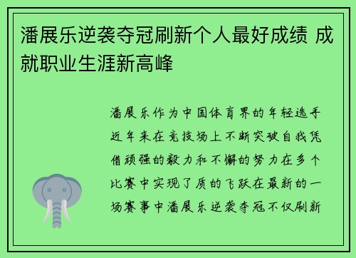 潘展乐在全运会跳水比赛中勇夺金牌,不仅证明了他出色的跳水技能,还打破了个人的最佳成绩,进一步展现了自...
