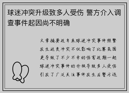 随着全球体育赛事的不断发展,球迷的热情与日俱增,然而,伴随而来的却是球迷冲突的时有发生。这些冲突不仅...