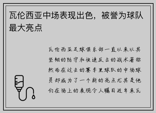 瓦伦西亚足球俱乐部一直以来以其坚韧的防守和快速反击的战术著称,然而在过去的赛季里,球队的中场球员却成为了一个新的亮点,尤其是他们在场上的表现令人瞩目。近年来,瓦伦西亚的中场球员不仅在攻防转换中起到了至...